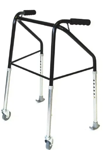 This Walking Frame is strong and durable. Made from a powder-coated steel frame with aluminium adjustable legs this aid has been designed with angled side bracing to allow the patient to have support over the toilet. This is our most popular frame ideal for slow stream and hip or knee replacement patients.